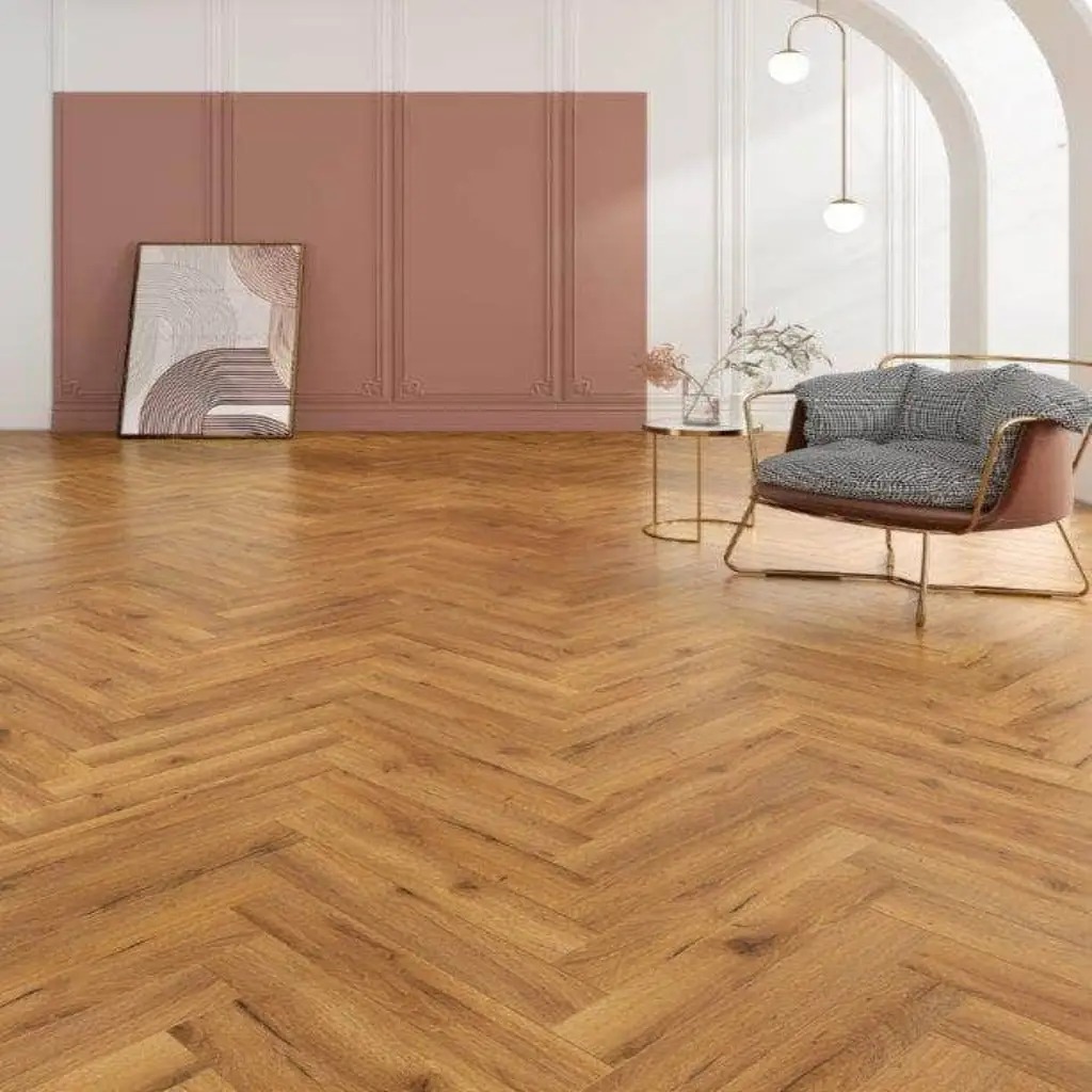 Herringbone wood flooring is the traditional style or pattern for laying parquet blocks . The blocks of flooring are much smaller than usual flooring planks and have been designed to create the distinctive ' herringbone ' zigzag pattern. You will fit the blocks of flooring together to provide a staggered zigzag pattern. The distinct characteristics of herringbone is that one rectangle is cut precisely so that the end of one plank or tile meets to the side of the other , this makes the design ultra - elegant flooring , masonry and tiling for the home .